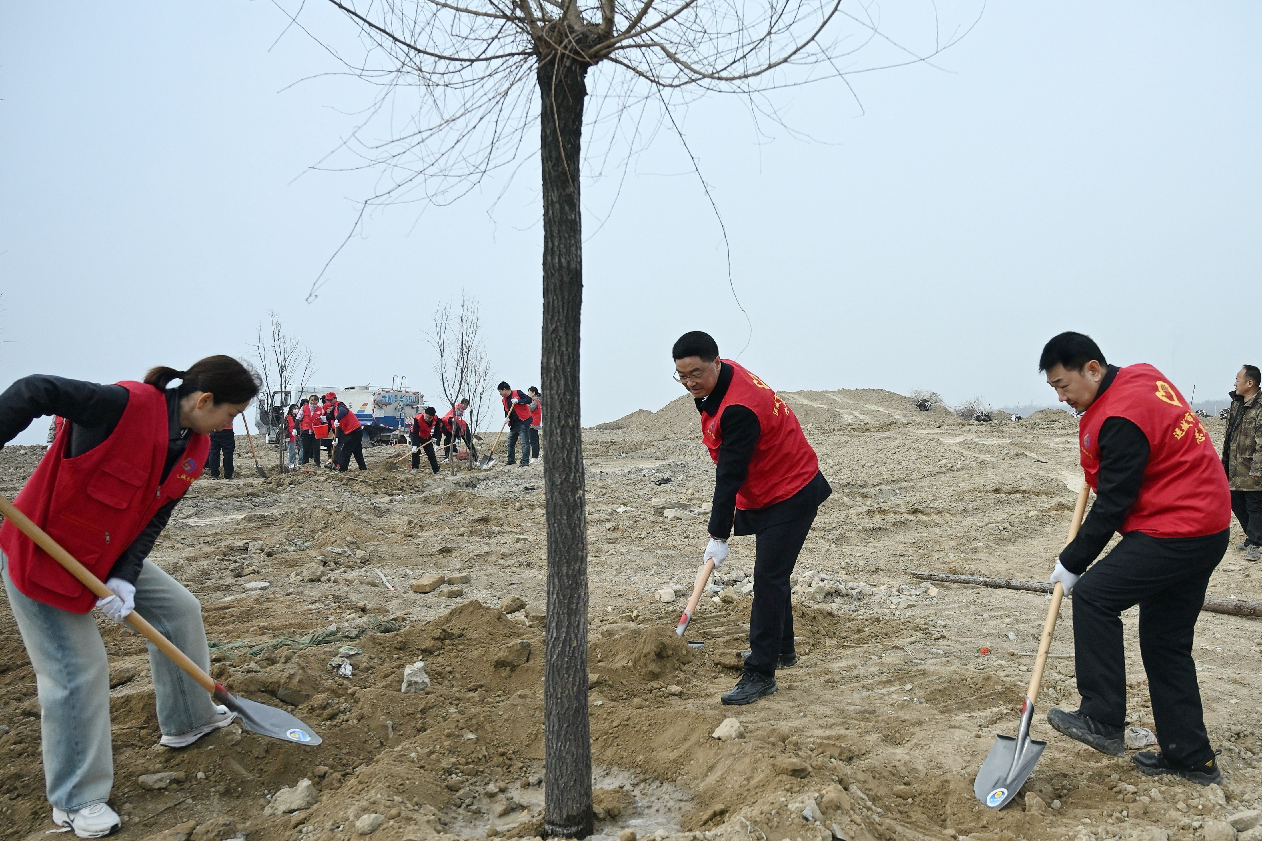 上午9時(shí),植樹活動(dòng)現(xiàn)場(chǎng)呈現(xiàn)一派熱火朝天的勞動(dòng)景象。公司領(lǐng)導(dǎo)率先垂范,與黨員干部一起揮鍬鏟土、扶苗填坑、培土澆水,大家分工協(xié)作,干勁十足,每一道工序都一絲不茍,認(rèn)真細(xì)致。經(jīng)過(guò)兩個(gè)多小時(shí)的辛勤勞動(dòng),50余株樹苗在鹽湖“安家落戶”,迎風(fēng)挺立,為初春的鹽湖增添了勃勃生機(jī)。