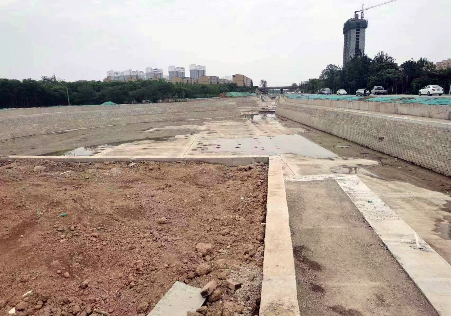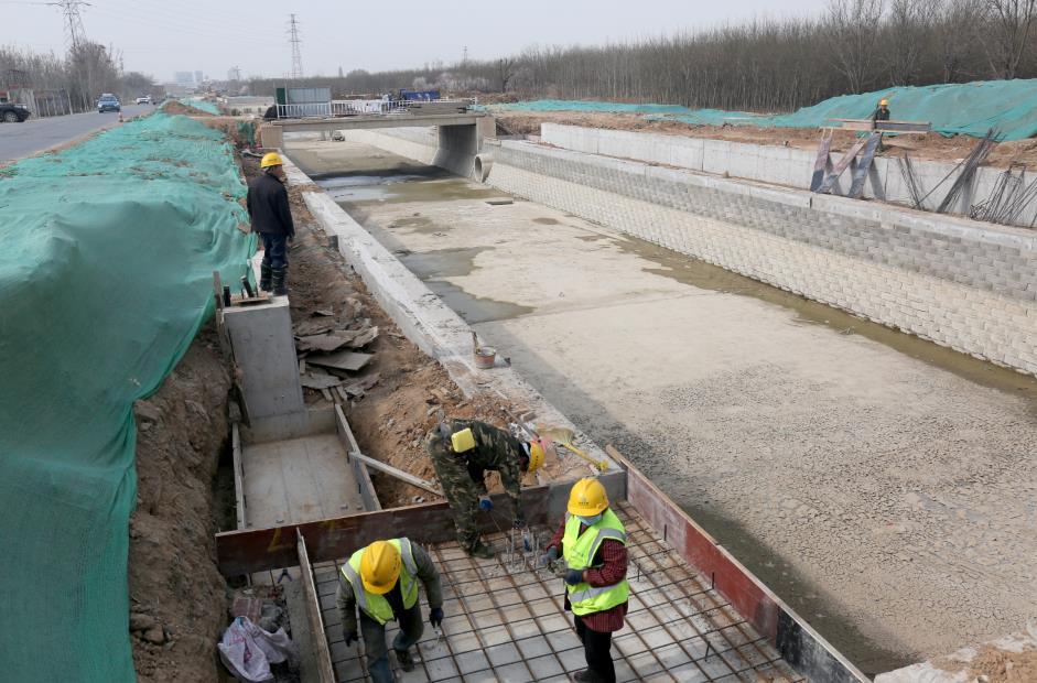工程批復總投資4.8億元,批復工程主要建設內容:渠道疏浚5 km;新建和改造兩岸堤防10 km;新建平板橋14座,人行拱橋3座;新建和改造截污管線4.02km;新建景觀鋼壩閘3座;渠道兩側綠化8萬m²;新建水循環(huán)泵站1座,埋設壓力管道4.8km。主要功能是泄洪、截污及景觀。2019年12月項目開工建設,工期兩年。