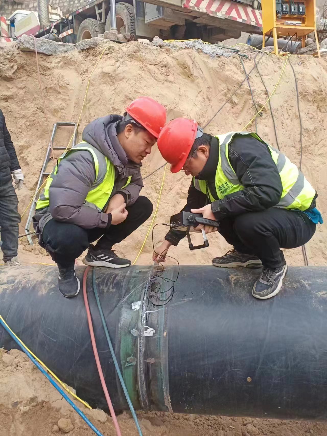 技術人員頂寒風深入河津市5號排水渠項目建設區(qū)域進行細致踏勘作業(yè)
