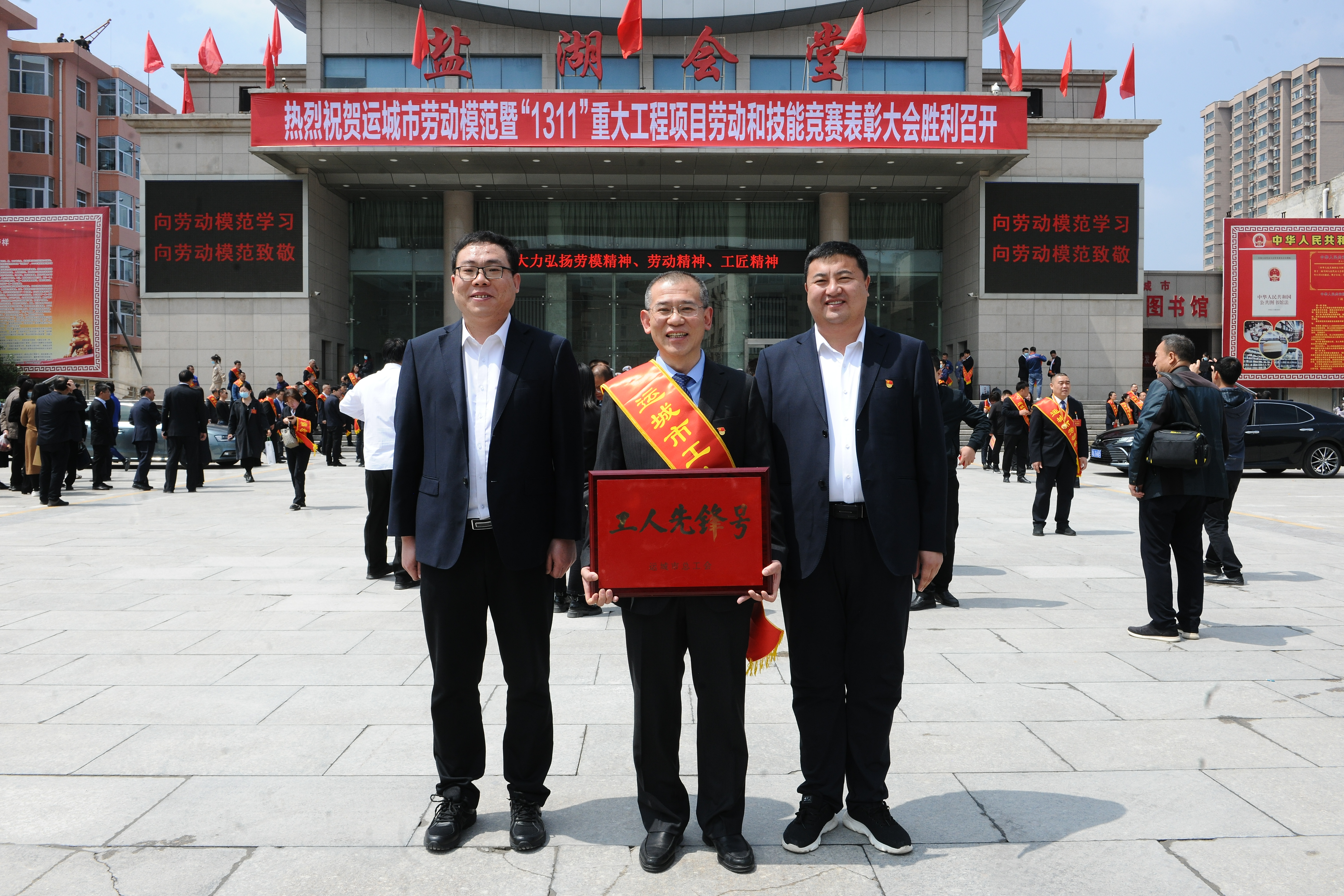 4月25日上午,運城市勞動模范暨“1311”重大工程項目勞動和技能競賽表彰大會在鹽湖會堂隆重召開!我公司榮獲“工人先鋒號”稱號。公司黨委委員、副總經(jīng)理、工會主席范永勝同志出席大會并上臺領(lǐng)獎。