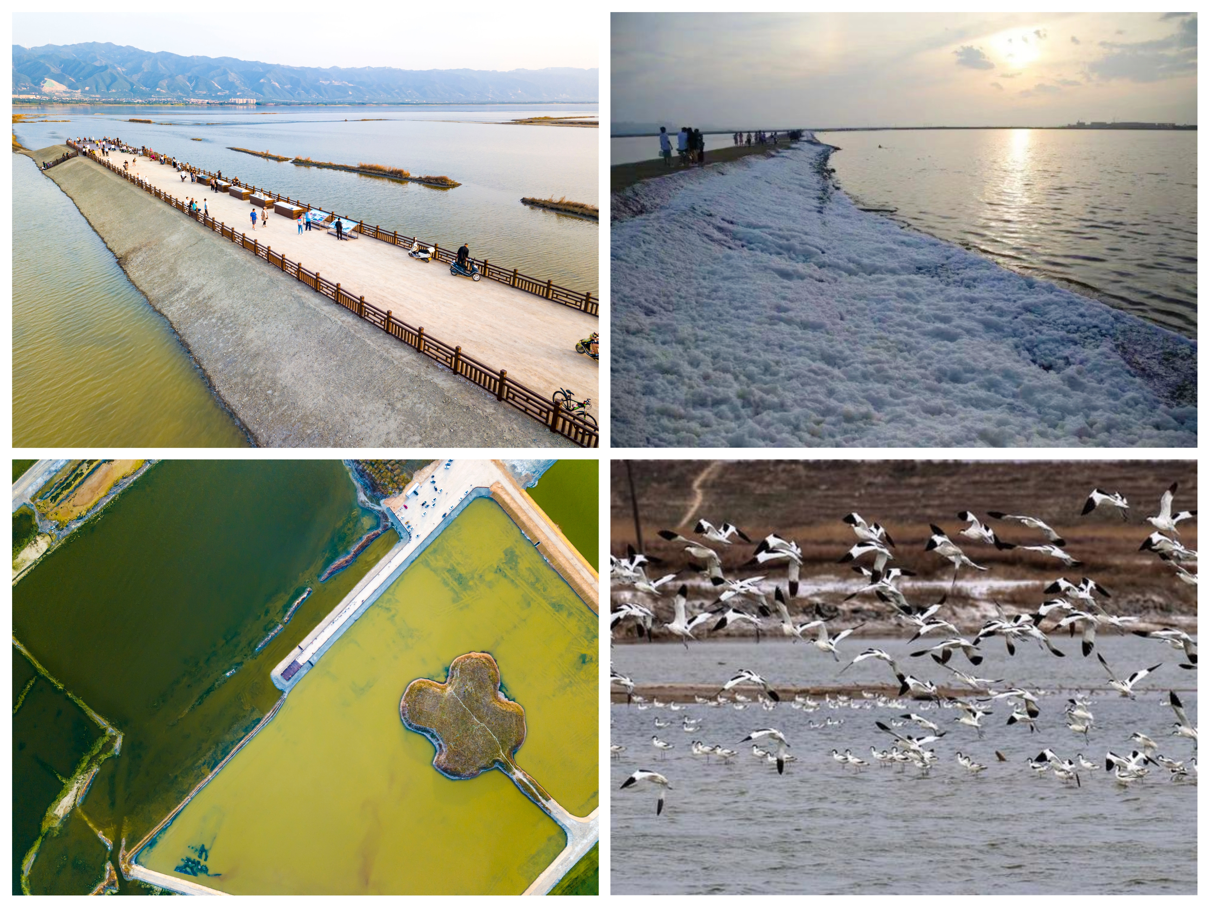 2021年以來(lái),由我公司負(fù)責(zé)實(shí)施的鹽湖堤埝除險(xiǎn)加固及生態(tài)修復(fù)工程,經(jīng)過(guò)對(duì)原運(yùn)硝路改造、堤埝平整加固、畦田清淤、江道疏浚,完成堤埝整治98千米、環(huán)湖綠道13.14千米、雜草清理41萬(wàn)平方米、草皮護(hù)坡10萬(wàn)平方米、淤面清理14萬(wàn)立方米;實(shí)施北坡綠化、岸帶綠化、荒灘綠化等工程,最大限度地保留了鹽湖的自然風(fēng)貌,厚植了鹽湖的生態(tài)底色。“退鹽還湖”兩年多來(lái),鹽湖已經(jīng)逐步從礦區(qū)、工業(yè)區(qū)變?yōu)樯鷳B(tài)保護(hù)區(qū)、旅游打卡地,為鹽湖長(zhǎng)遠(yuǎn)可持續(xù)發(fā)展預(yù)留了資源空間。