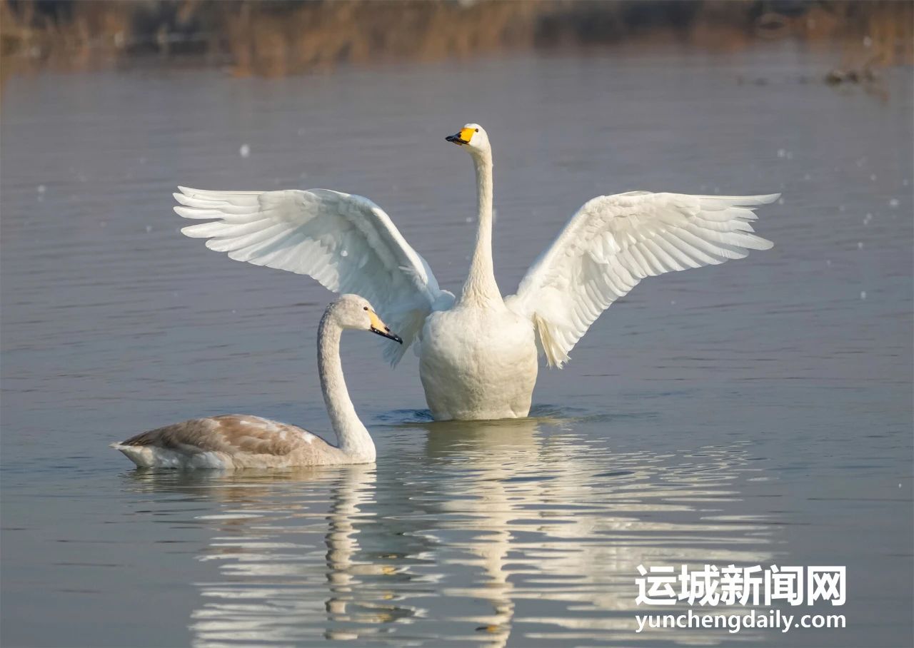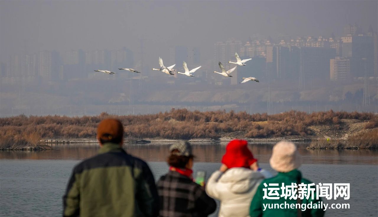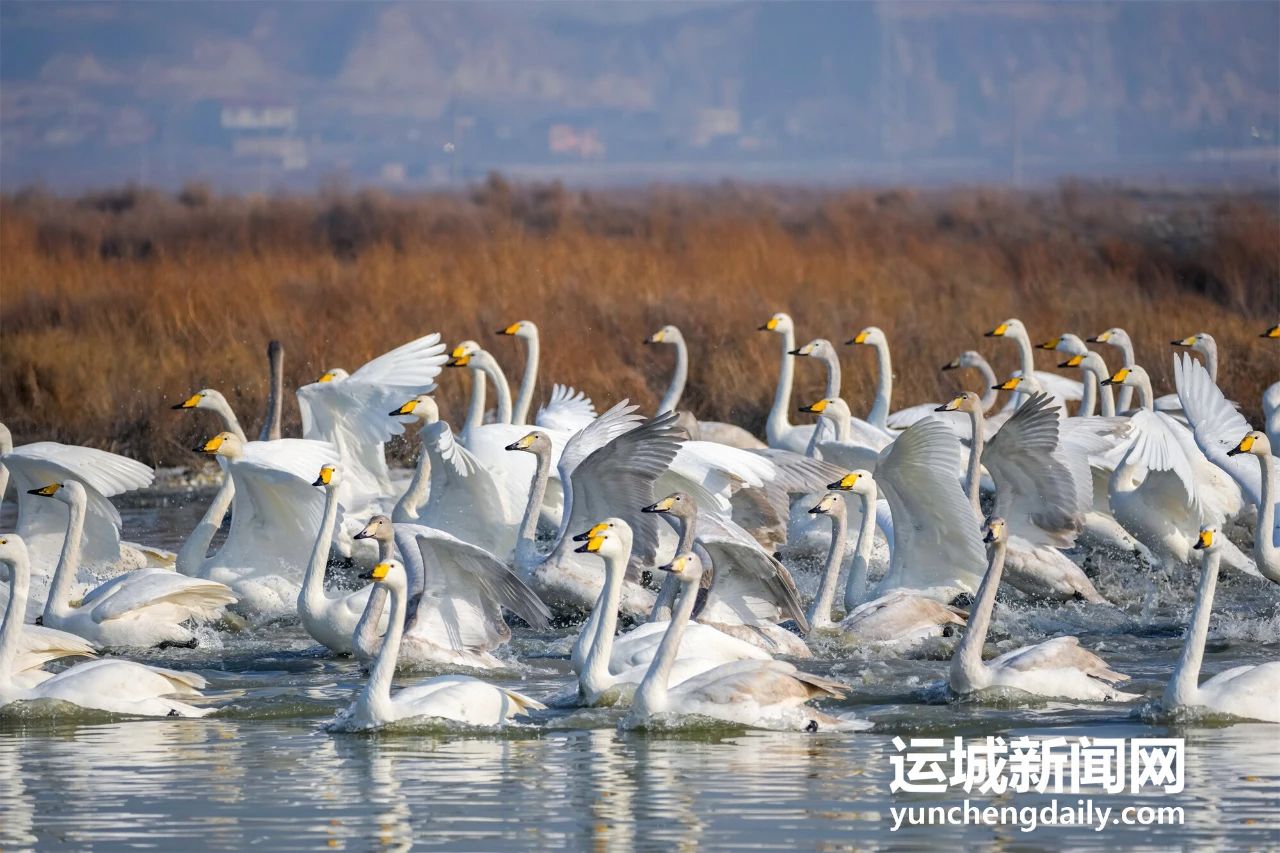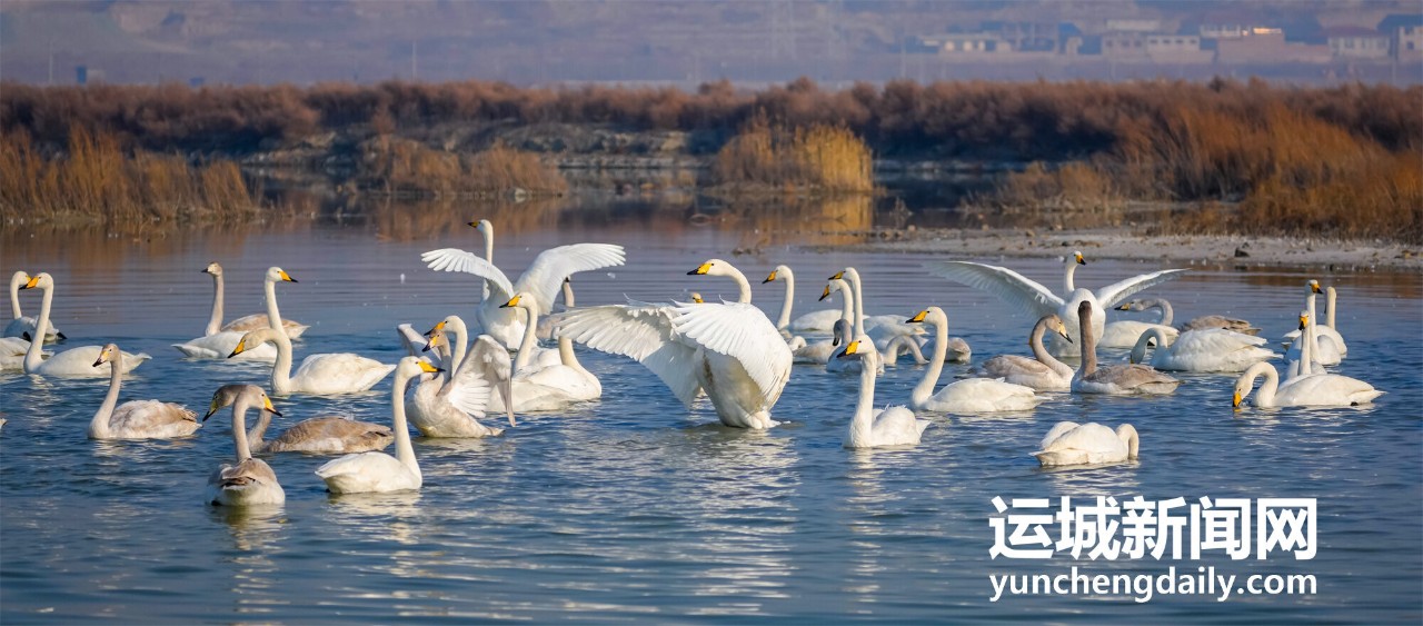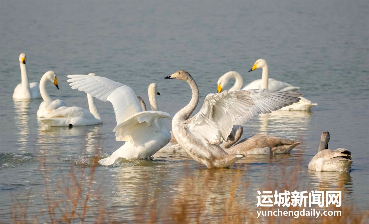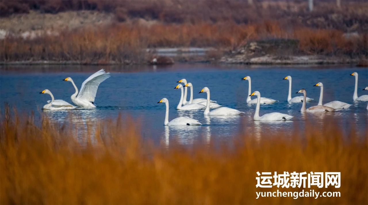 冬日時(shí)節(jié),近百只天鵝飛抵鹽湖濕地棲息越冬,它們時(shí)而嬉戲、時(shí)而飛翔,成為冬日鹽湖一道靚麗的風(fēng)景,吸引眾多游客前來觀賞。