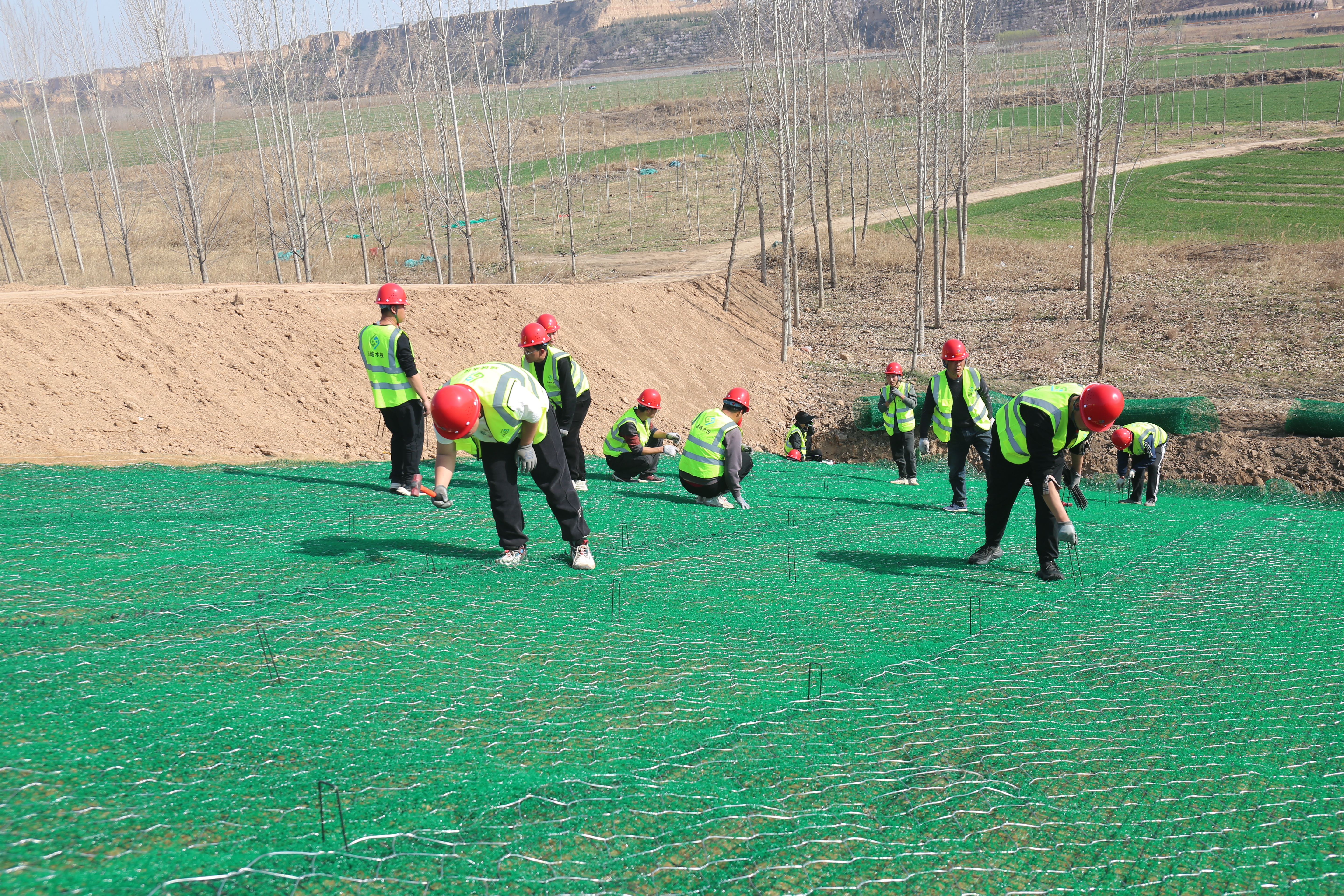 為全面落實(shí)重點(diǎn)工作目標(biāo),確保工程按期完成,市水投公司水工局有限公司的60余名在職員工駐扎一線,立足崗位,設(shè)定目標(biāo),成立專(zhuān)班,分組實(shí)施。他們相互協(xié)作,用雙腳丈量著責(zé)任和擔(dān)當(dāng),用雙手鋪設(shè)著生態(tài)護(hù)坡的“自然之美”。