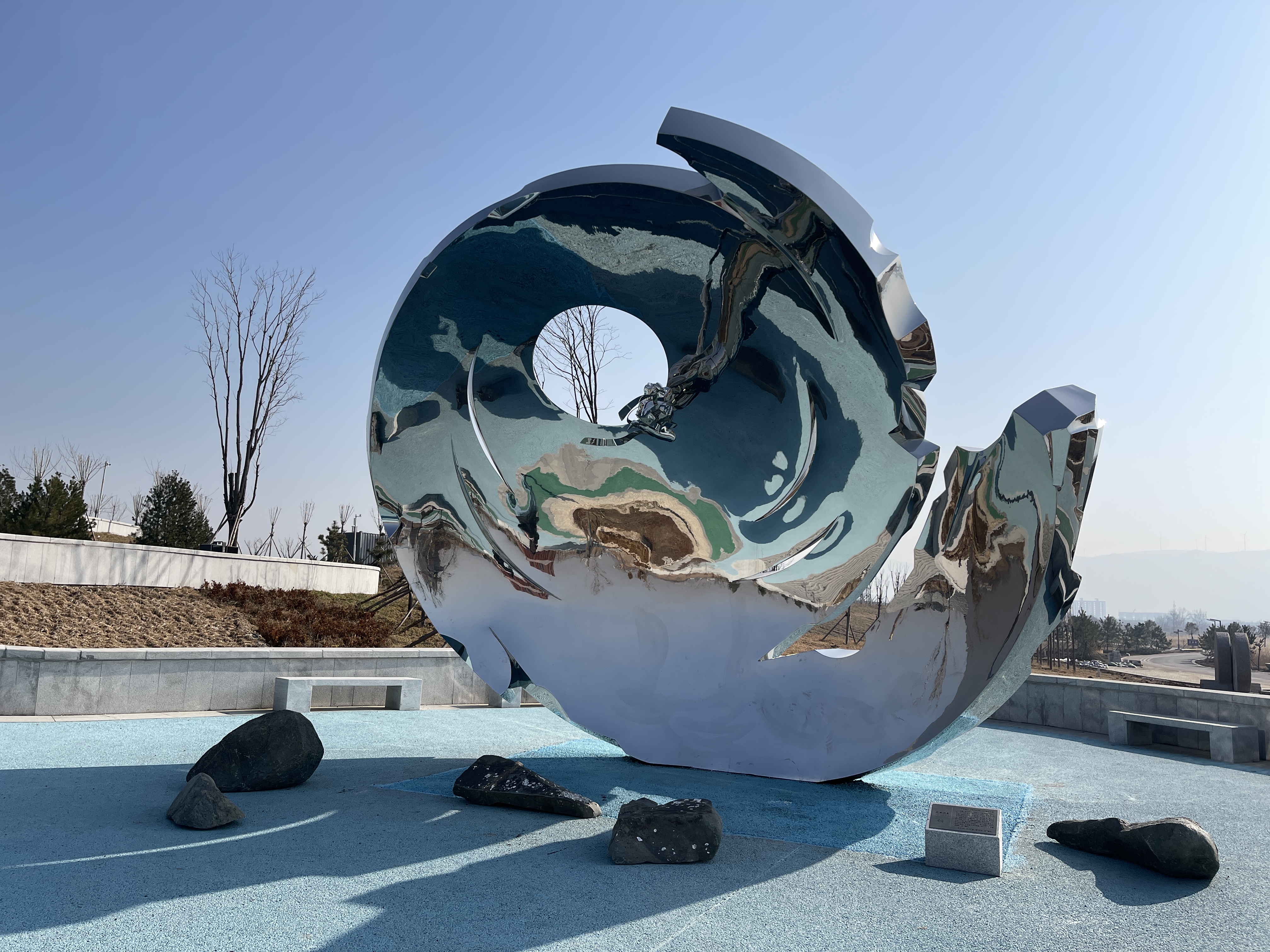 河?xùn)|成語(yǔ)典故園背靠鹽湖東側(cè)的鴨子池,占地面積約2萬平方米,盡可能覆蓋了源于運(yùn)城的成語(yǔ)典故——60座(組)雕塑作品,一座雕塑講述一個(gè)成語(yǔ)典故,如涿鹿之戰(zhàn)、舜歌南風(fēng)、鯉躍龍門等等。在以時(shí)間為主要脈絡(luò)的設(shè)置中,分區(qū)打造了中華祖源、以德配天、家國(guó)天下、高士流芳、河?xùn)|傳奇五大板塊,多個(gè)主題呈現(xiàn)運(yùn)城幾千年來的歷史風(fēng)華。站在典故園內(nèi),湖光山色下,或沿步道散步,或拍照打卡,或駐足品讀典故,園區(qū)雕塑配套廣場(chǎng)、瞭望臺(tái)、名人名家賦詞牌等設(shè)施,我們更是增加了智慧導(dǎo)覽服務(wù),讓游客可以沉浸式感受河?xùn)|文化,將河?xùn)|文化無聲潤(rùn)澤于心。