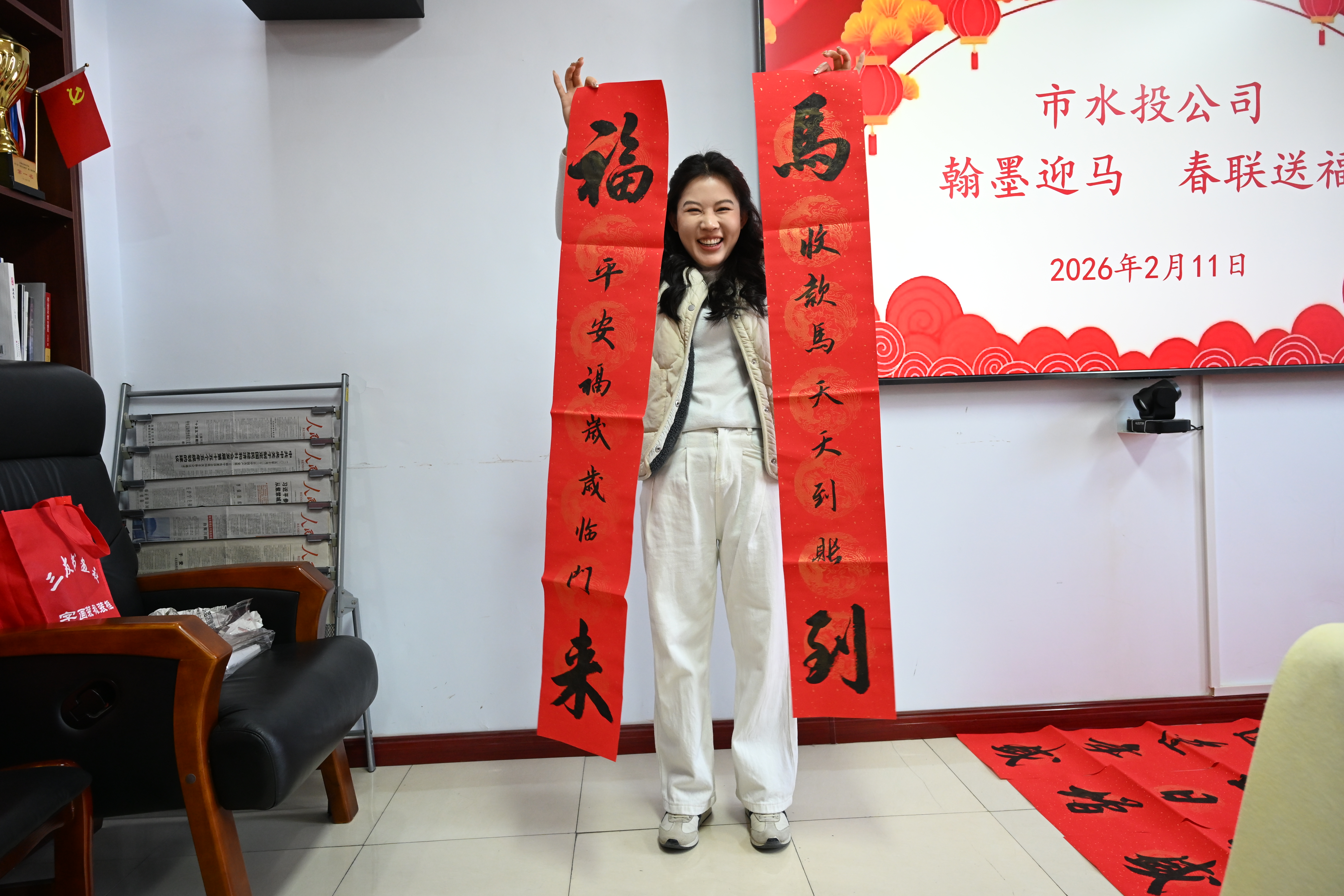 新春將至,年味漸濃。為喜迎2026年馬年春節(jié),進(jìn)一步豐富職工精神文化生活,弘揚中華優(yōu)秀傳統(tǒng)文化,2月11日,市水投公司舉辦了“翰墨迎馬 春聯(lián)送福”春節(jié)送春聯(lián)活動,為廣大干部職工送上充滿傳統(tǒng)文化韻味的新春問候。