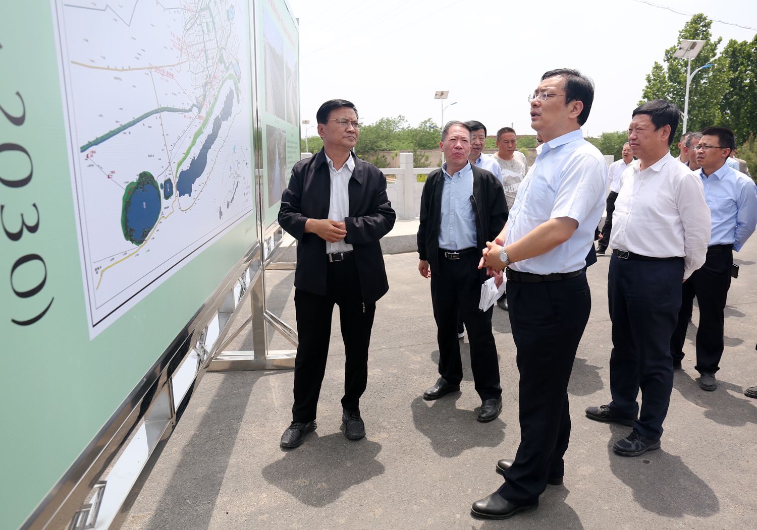 5月5日上午,市委書記丁小強(qiáng)在市委常委、市委秘書長(zhǎng)喬登州、鹽湖區(qū)區(qū)委書記李哲、區(qū)長(zhǎng)薛永琦、市水務(wù)局局長(zhǎng)靳虎剛等領(lǐng)導(dǎo)的陪同下,蒞臨姚暹渠空港段、禹都段調(diào)研,現(xiàn)場(chǎng)聽取了我公司董事長(zhǎng)崔作銘關(guān)于項(xiàng)目進(jìn)展情況的匯報(bào)。