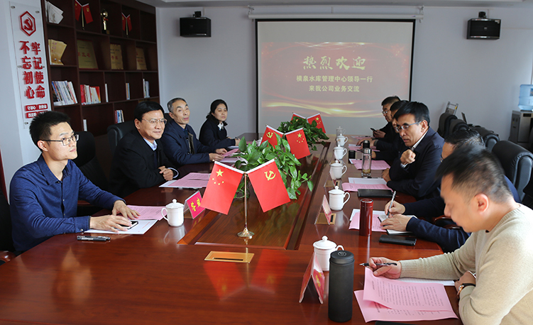 11月10日下午,呂梁市橫泉水庫(kù)管理中心主任任劍鋒一行來我公司進(jìn)行業(yè)務(wù)交流。黨委書記、董事長(zhǎng)兼總經(jīng)理崔作銘、副總經(jīng)理呂希汶?yún)⒓恿私涣鲿?huì)。