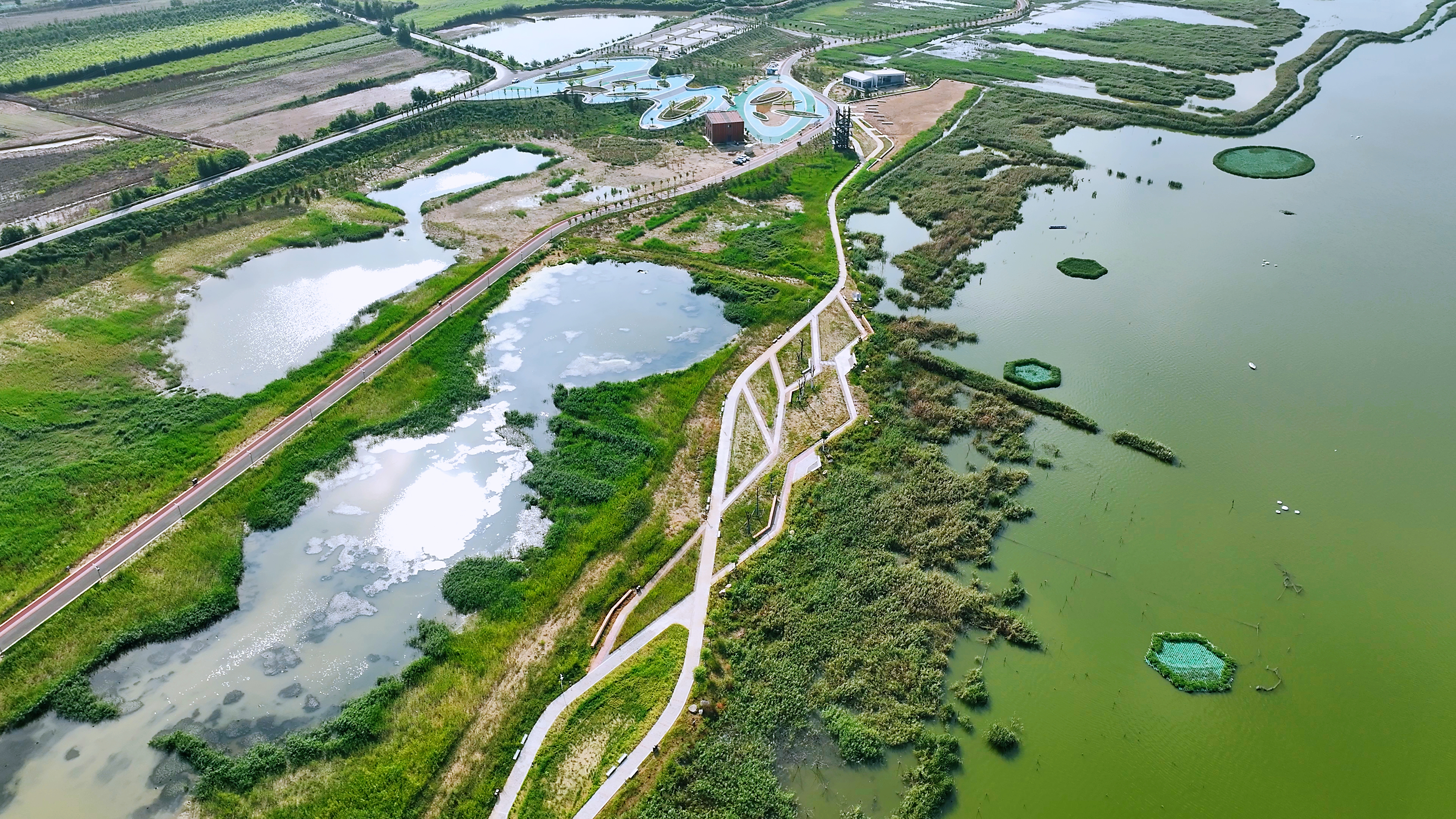 鴨子池位于鹽池東側(cè),總面積4.7平方公里,是保護(hù)鹽池重要的蓄泄洪區(qū)??偼顿Y3.4億元的鴨子池水生態(tài)綜合提升工程,作為我市“1311”重大工程項目,于2020年開始實施。2024年1月,工程榮獲山西省勘察設(shè)計協(xié)會設(shè)計三等獎;2024年6月,榮獲建筑業(yè)協(xié)會“汾水杯”獎;2024年7月,榮獲中國市政工程協(xié)會最高水平評價工程獎。在這些獎項的背后,鴨子池有何亮點,能在全國市政工程中脫穎而出?
