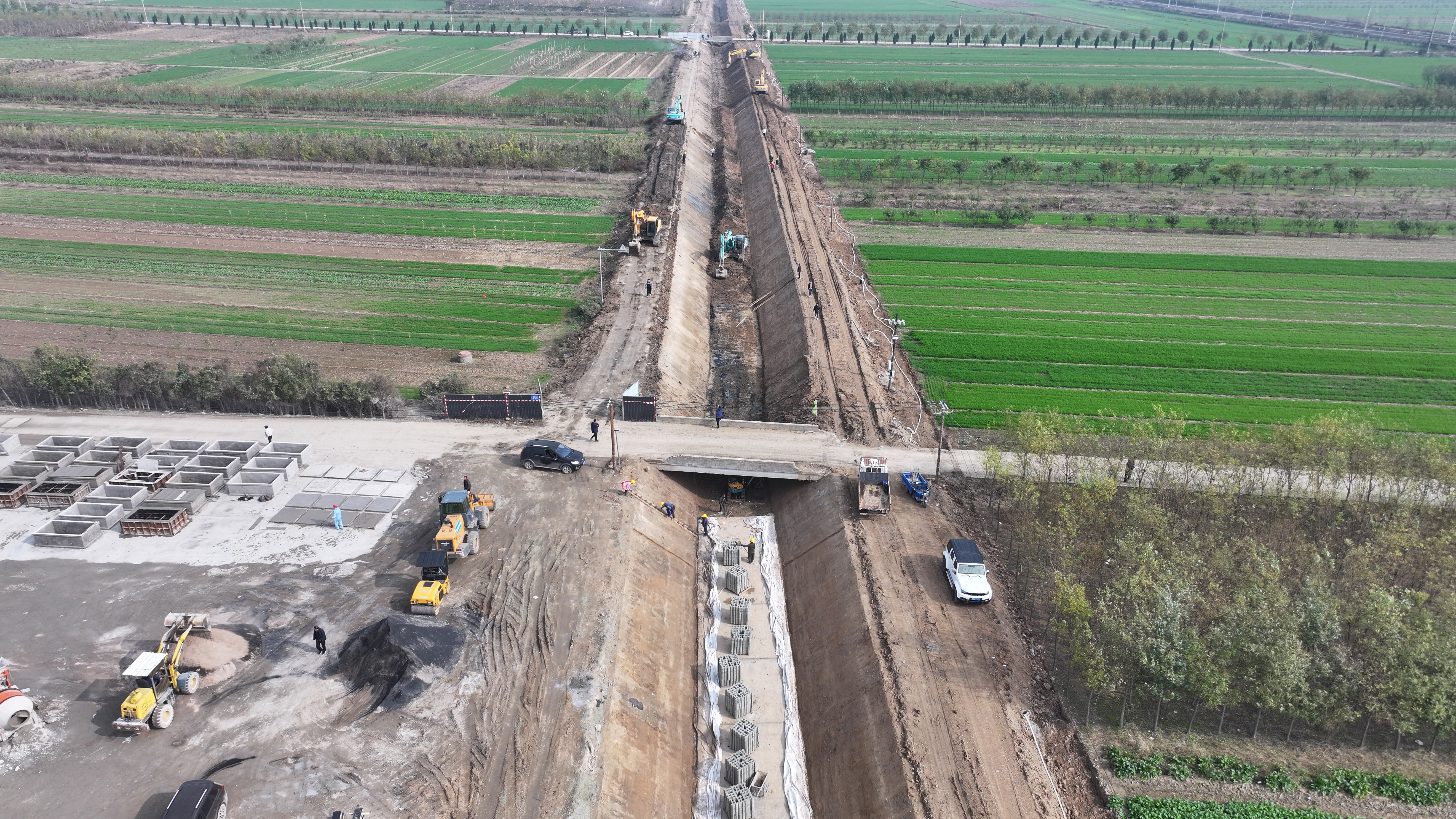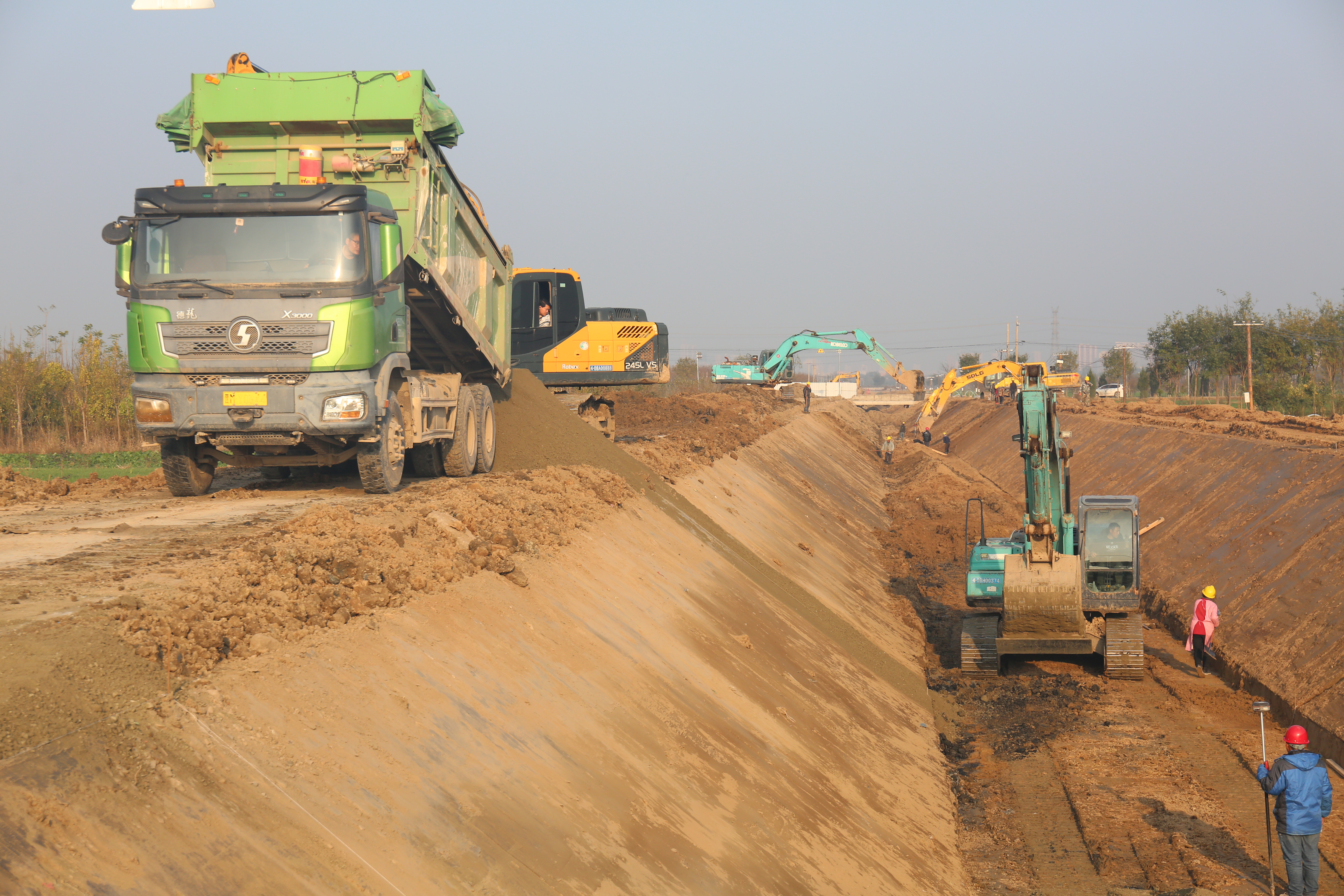 在項目施工現(xiàn)場,挖掘機(jī)、裝載機(jī)、振動碾、壓路機(jī)等多臺大型機(jī)械設(shè)備正全力運(yùn)轉(zhuǎn),二十四小時作業(yè)不停工;十余名管理人員吃住在工地,隨叫隨到,發(fā)現(xiàn)問題及時解決問題,二十余名施工人員一身土一身泥,不叫苦不叫累,連續(xù)戰(zhàn)斗在工地;多個工作面同時展開施工,專人專崗,落實主體責(zé)任,各項工作井然有序,工程進(jìn)度按照既定的工作目標(biāo)穩(wěn)步進(jìn)展。截止目前,已完成井點降水打井133眼,降水臺班2300個;清基28519m³、土方開挖9000m³、土方回填約6000m³、砂礫石墊層200m;渠道底板混凝土澆筑200m。
