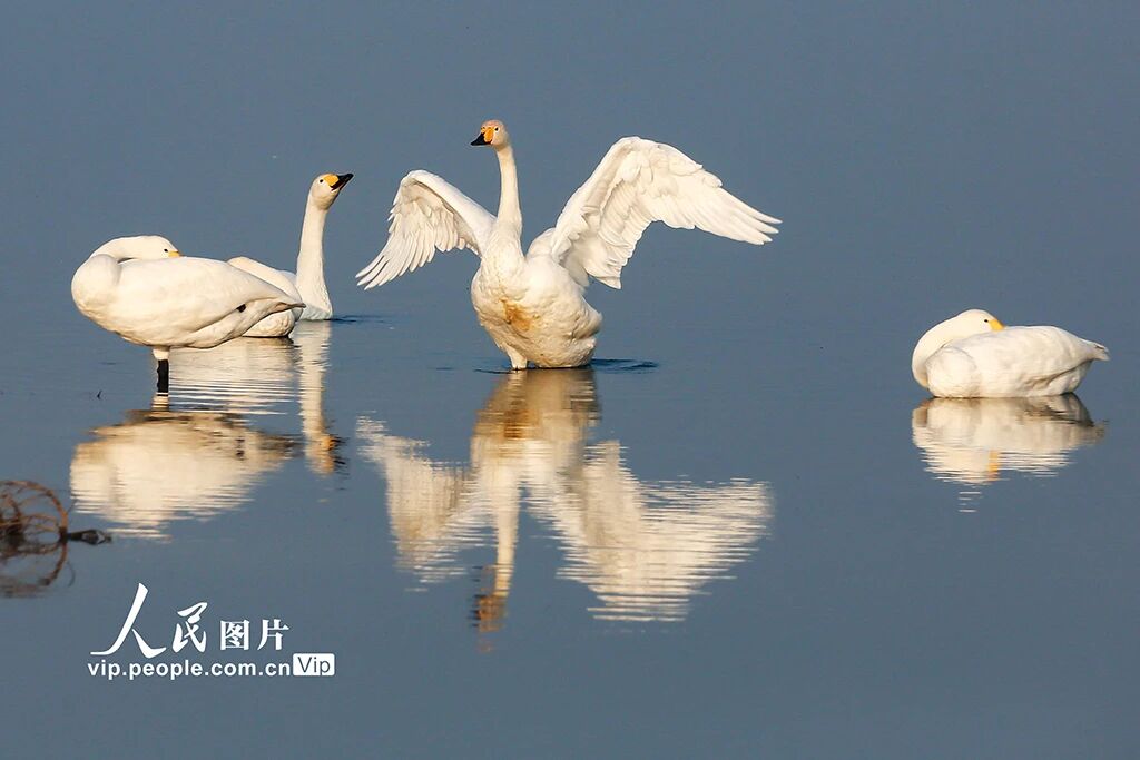 【保護生物多樣性】運城:首批越冬天鵝飛抵鹽湖“安家”